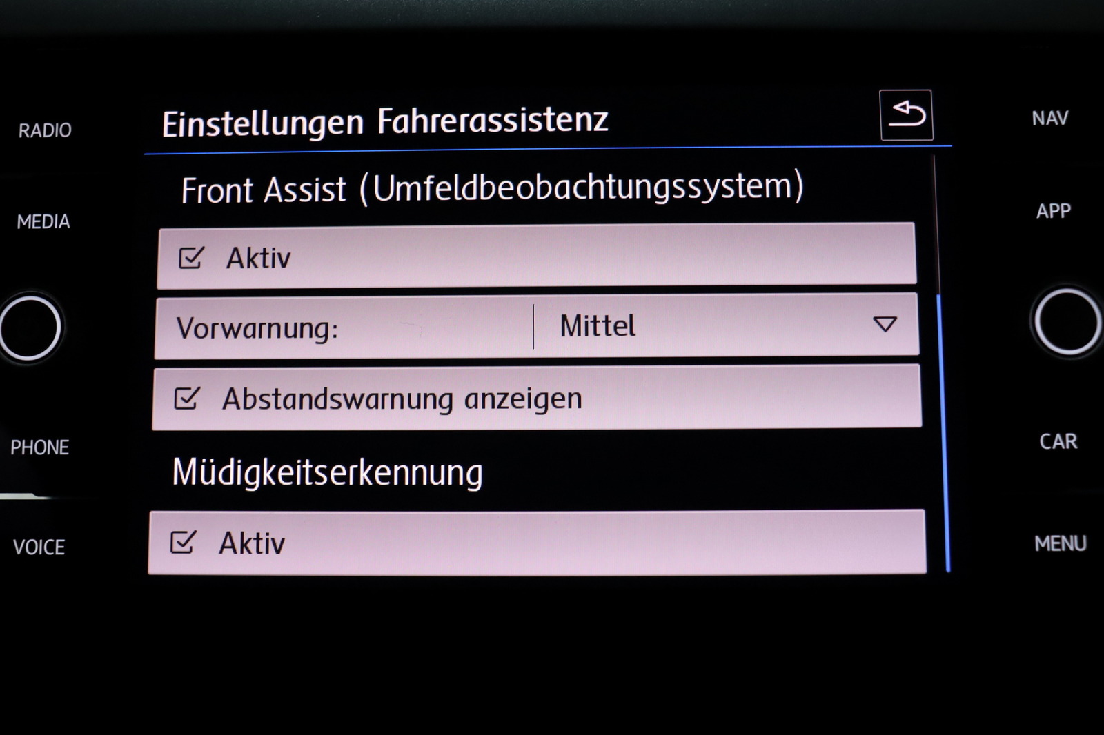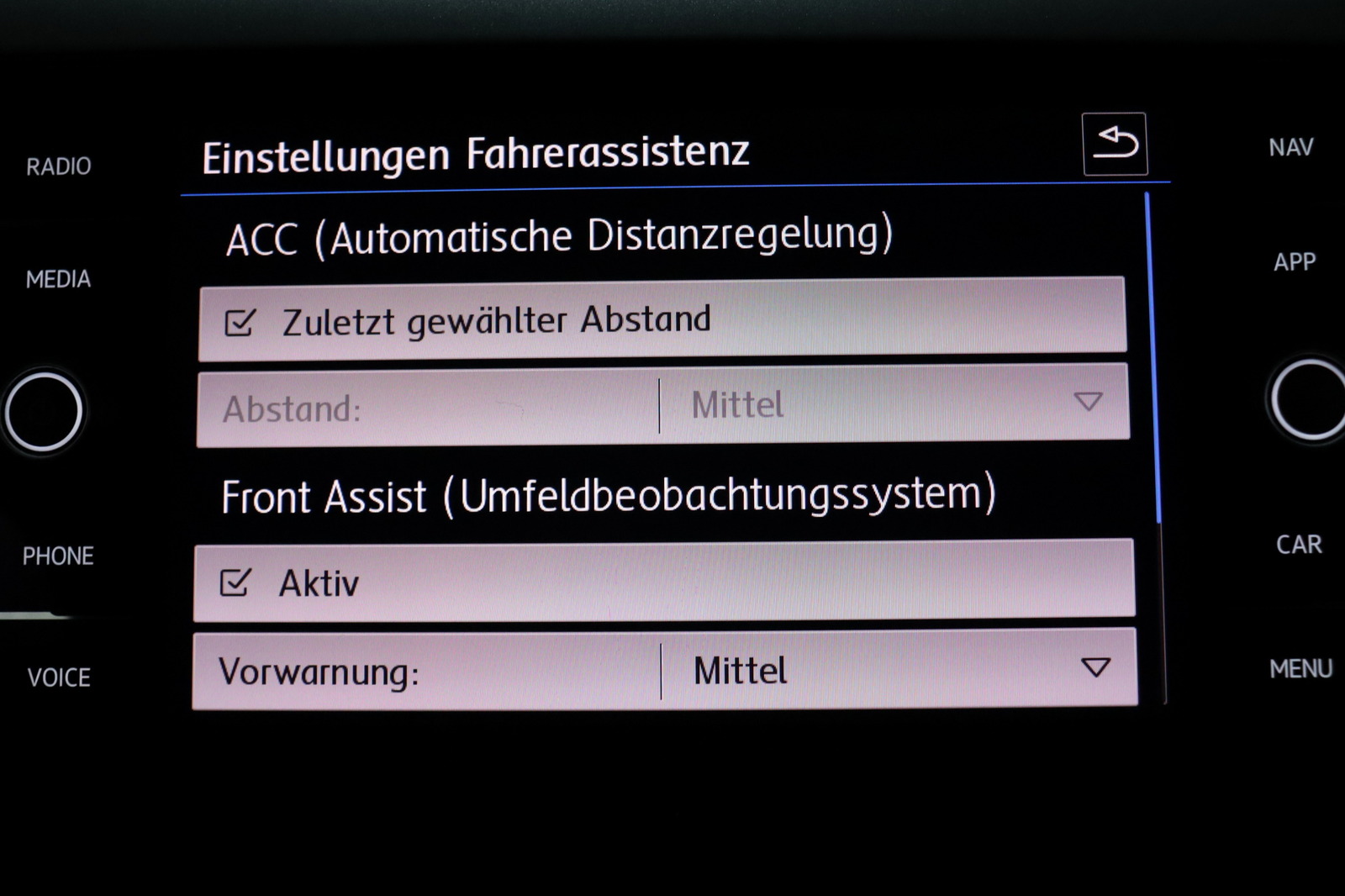 Automatische Distanzregelung ACC und Umfeldbeobachtungssystem Front Assist mit City-Notbremsfunktion